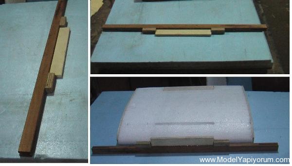 Sağ ve sola kanatlara yapıştırılan hücum çıtası orta kanadın paralelinden kenara doğru kesildi daha sağlamlık arz etsin diye