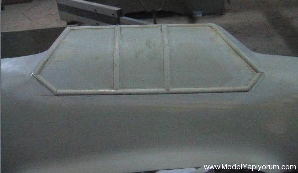 Arka yatay kanadın yerini kuyruk kısmında açtım dremelin kesici taşı ile kabaca kesip peşinde zımpara ile tesviyesi yapıldı